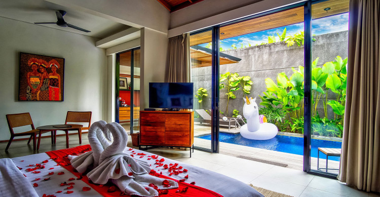 "Exclusive Legian One Bedroom Villa makes a visual statement about the direction of Balinese design. It has a fresh and edgy look that ventures beyond tradition and celebrates the spirit of local creativity.