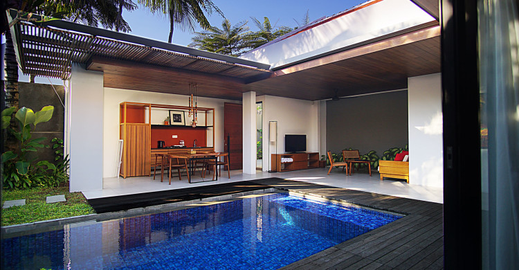 "Exclusive Legian Two Bedroom Villa makes a visual statement about the direction of Balinese design. It has a fresh and edgy look that ventures beyond tradition and celebrates the spirit of local creativity.