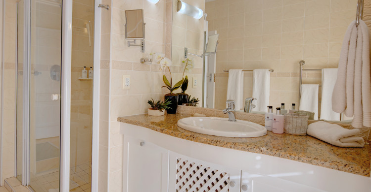 It consists of a spacious bathroom with shower only. Enjoy our high quality personalized amenities and the personal touches that together make this your home away from home.