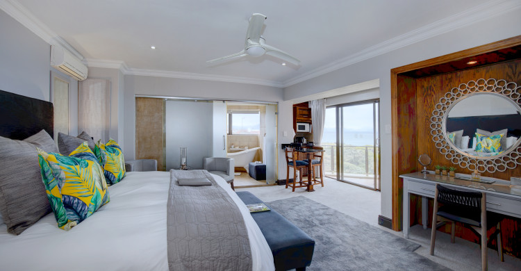 Sea breeze Air conditioner and ceiling fan King-size bed (or 2 single beds) with 400 thread count percale linen Dresser, chair and high quality blow dryer Arm chair and coffee table Flat screen TV CD/DVD player – DVD available for use Telephone available on request Electronic safe Alternative bedding Small kitchenette Bar-fridge Coffee/tea facilities Microwave oven