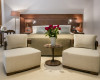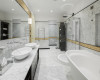 The floors in the rooms are parquet or carpet, and the bathrooms are stone or a combination of stone and mosaic. The bathrooms feature a shower and a bathtub (two rooms have only a bathtub), two sinks, a bidet and high quality cosmetics for everyday care. Terraces, balcony or loggias with a stone floor or wooden deck have ensemble seating.