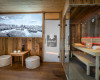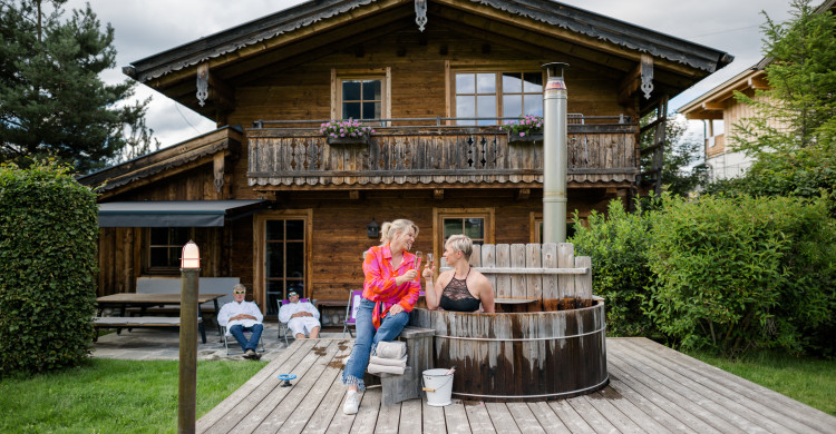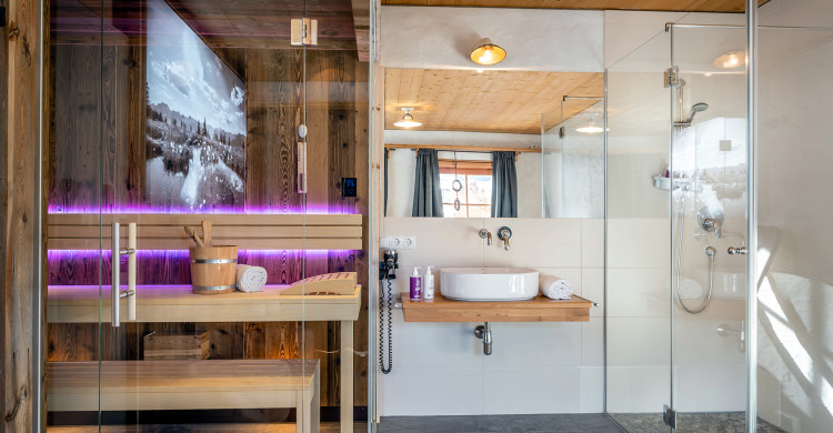 130 m²m² 2 - 8 persons 2 bedrooms with 1 double bed & 1 single bed, 1 children's sleeping nest with bunk bed 2 showers or bathtub & WC, 1 guest toilet Living room, kitchenette, sitting area Wellness area with sauna, shower, rest area Hot pot on the terrace (1 filling per day included) Terrace with professional BBQ grill & fireplace from 196 € to 293 €