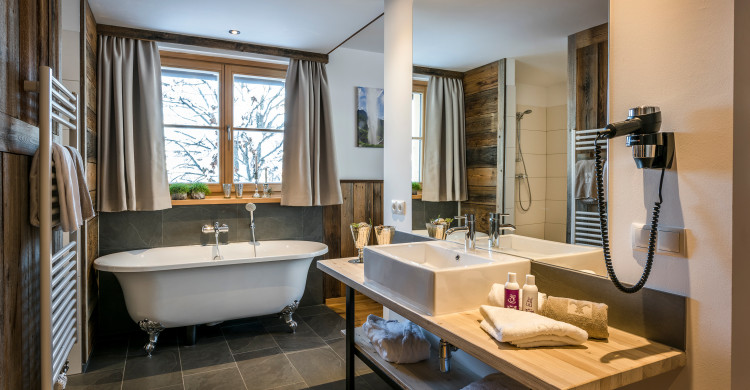 Double room at the Adventure Lodge (some with balcony) view to the mountains, cable TV, WIFI, shower, WC, balcony and Hot Pot or bathtub - please let us know about your preferences with your booking, 1 double bed & two optional beds,incl. breakfast buffet, incl. use of spa & pool