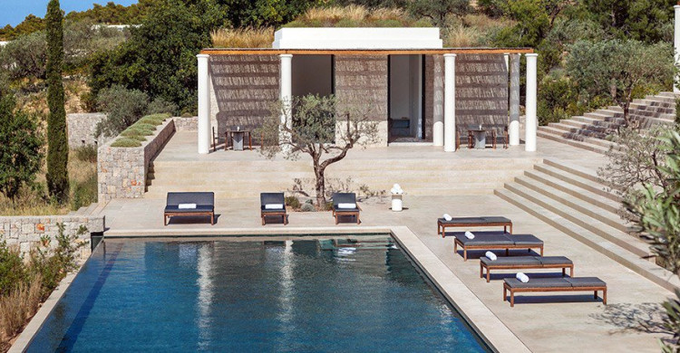Providing seamless indoor/outdoor living, the 4-Bedroom Villa is surrounded by olive groves overlooking the Aegean Sea and the surrounding countryside. Two full-time members of staff including a chef and a host look after guests in complete privacy.