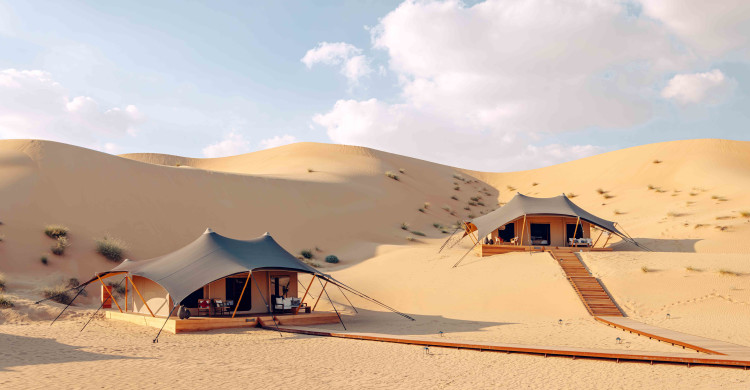 Step into Amar Luxury Desert Ecolodge, an immersive retreat where refined comfort meets the timeless beauty of the Arabian desert. Created by Magic Travels (est. 1985), this eco-conscious desert sanctuary features 10 spacious Deluxe Tents nestled among golden dunes, offering an exclusive and serene escape in the UAE.