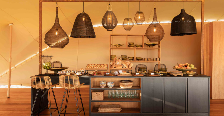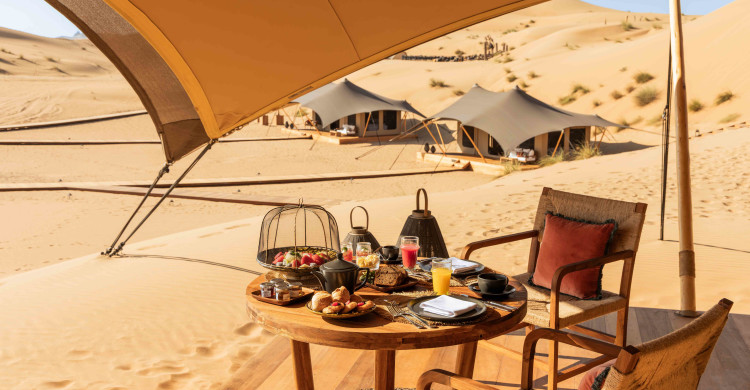 Guests can also enjoy mezze, bespoke breakfast spreads, and romantic meals served directly to tent decks.