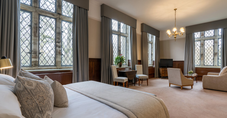 Master Suites are each individually styled with either a king size or four poster bed, a view of the lake and lawns or parklands and an array of exclusive features from wood panelling to stained glass windows, or lovely bay windows which flood the suite with natural light. All Master Suites have gorgeous bathrooms.