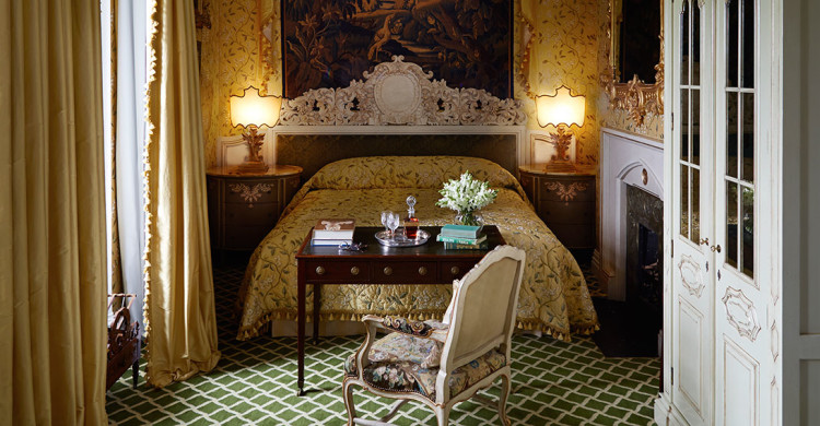 Rooms feature wonderful antiques such as a German Baroque stumpwork silk decorated tester bed made for Friedrich Christian Freiherr von Spee in the late 17th Century; a Louis XV painted and parcel gilt trumeau mirror circa 1750; and satinwood and rosewood cross banded writing tables circa 1900, used as bedside tables.
