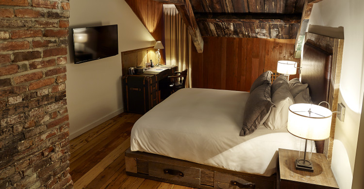 Suites may feature original wood flooring, ceilings, and exposed wood beams, giving them a rustic elegance.
