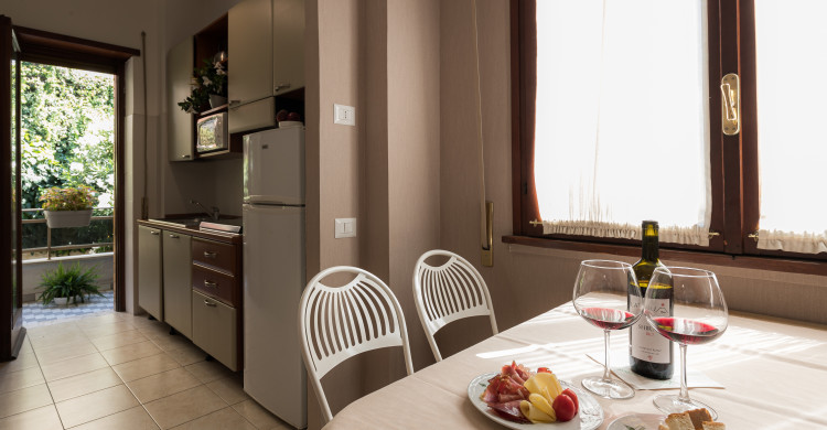 Comfortable apartment of 75sqm with living room with three single sofabeds and smart TV 42", double bedroom with air conditioning, fully furnished kitchen, bathroom with shower, and balcony/garden. Sleeps up to 5 people.