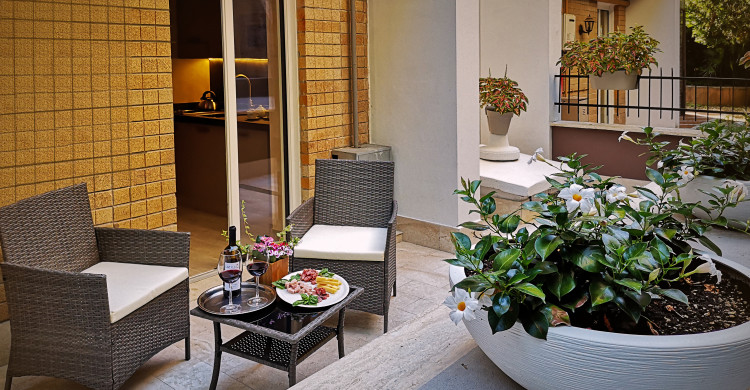 A unique and personalized experience created for couples located in an intimate corner of the residential complex. Our Wellness Experience Apartment is the perfect choice for those seeking relaxation and privacy, while remaining within walking distance of the historic center of Rome. Maid service attends daily, instead of weekly, as special arrangement for our direct Guests!