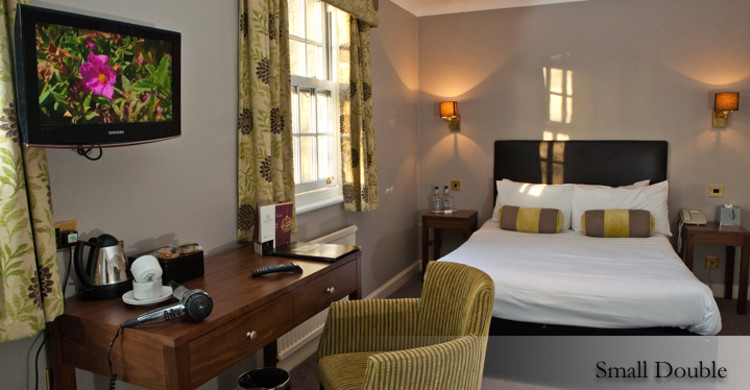 The Small Double bedrooms offer a cosy and comfortable setting suitable for single or double occupancy. All Small Double bedrooms have double size bed, an en-suite bathroom, tea and coffee, hair dryer and ironing facilities. The rooms have a direct dialling telephone connection, Free-view digital flat screen TV and complimentary wireless internet access.