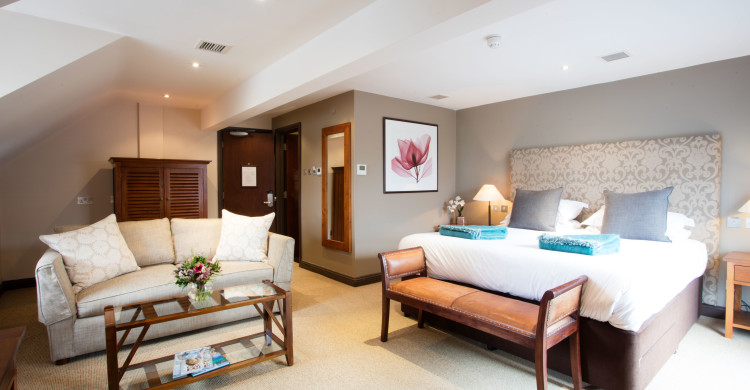 Larger than Superior Rooms, our Junior Suites offer increased space and comfort, with a Super King Sized double bed, en-suite facilities, bath and shower with complimentary The White Company luxury toiletries. Fully equipped with: free Wi-fi, large flat screen TV with satellite channels, air conditioning, fridge, dressing gowns and slippers, safe, tea/coffee making facilities.