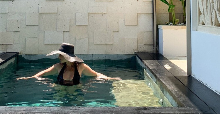 Private Plunge Pool Outdoor bathing Spacious Balcony with Day Bed Stunning turquoise ocean with Mount Agung view