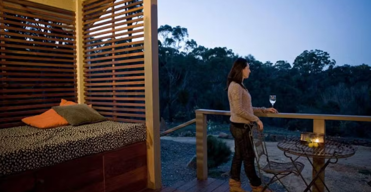 Your romantic getaway includes a stay in your own beautifully styled, self-contained villa with bushland views from every window, a spa bath, crackling fireplace, and a sumptuous canopy bed dressed in soft white cotton linen.