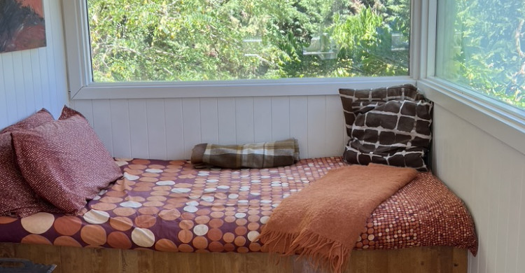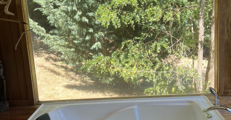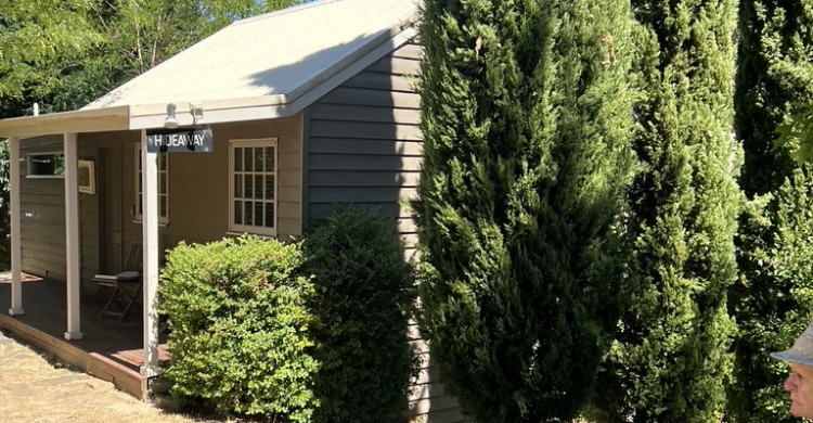 Hideaway Spa Villa is beautifully decorated with Balinese artefacts along with a Bali influenced outdoor exhilarating shower. It has a front verandah and deck as well as an expansive deck at the back that looks down to the creek valley and across to the state forest. It includes a spa bath with fantastic views, wood fire, delightful kitchen (also with great views including the grove of Colorado aspen tress surrounding the villa), a DayBed for cruising and a very relaxing lounge area where you can just sit back or view the digital TV with DVD player and a small selection of classic DVDs