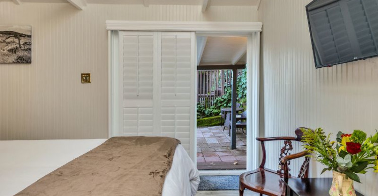 Experience the Calistoga Room, where historic charm meets modern comfort. Our charming cottage, once a tack room, has been transformed into a cozy, pet-friendly retreat, offering private access from both the main house and the deck. For a small fee, your four-legged companion is welcome to join your Napa Valley getaway.