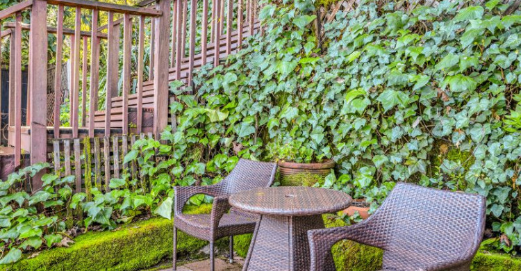 Step outside to your private garden, a tranquil space shaded by a delicate trellis—perfect for sipping your morning coffee or unwinding with a glass of wine at sunset. Inside, the cottage features a plush king-size bed, a TV with a full cable lineup, and thoughtful touches like an in-room refrigerator, coffee machine, and complimentary snacks and bottled water curated for two.