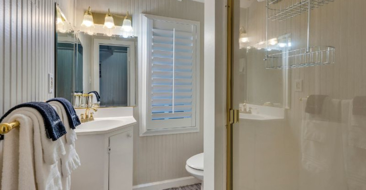 The private bathroom blends vintage elegance with modern convenience, featuring a shower with timeless American Standard 1920s collection fixtures. Whether you're seeking romance, relaxation, or a little nostalgia, this inviting hideaway at Calistoga Wine Way Inn promises a truly memorable stay.