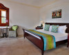 These beautifully appointed rooms have partial ocean views and overlook the tropical gardens from a private verandah. Luxurious bathrooms and spacious outdoor covered living area complete the design and some include an outdoor shower. Hand-painted tiles in the en suite bathrooms and rich fabric in the bedrooms assure an elegant warm atmosphere.