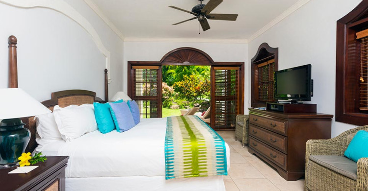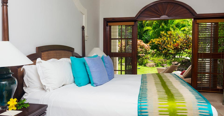 Nestled in the verdant tropical gardens, these rooms are tastefully intimate and can come with a king size bed or some with twin beds depending on the guests preference. The en suite bathrooms have blue and white hand-painted tiles adding to their charm. A balcony or terrace offers outdoor relaxation and dining possibilities. Cap Maison’s gardens are landscaped by the island’s most experienced expert. This luxurious hideaway captures the sights and sounds of the tropics with hummingbirds close at hand to delight you.