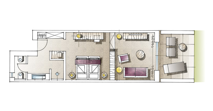 Services & Amenities - specially designed built-in furniture of high-quality oak wood - generous living area with couch, lounge and desk - furnished terrace - luxurious Italian linens “Bellora” | pillow menu - Nespresso coffee maker, select teas and complimentary mineral water - Nightly turn-down service | 24 h room service - Free WiFi - 43“ flat-screen TV | minibar | safe - air conditioning