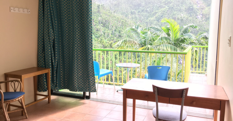 Room 1 is located at the end of the upper-level corridor. This unit has one queen bed with a private balcony with views of the jungle, river, and valley below. The room also has a private bathroom with a hot water shower.