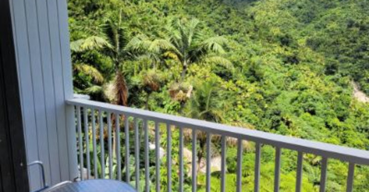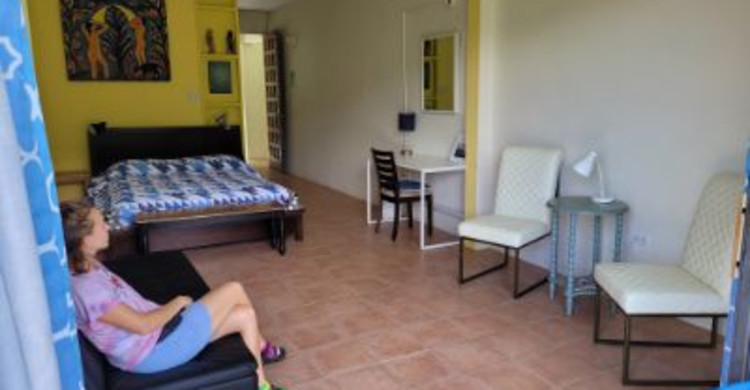 This spacious corner room on the upper level overlooks the Cubuy river with one queen bed and a large balcony. Room also has a private bathroom with hot water shower. The nightly rate is $180