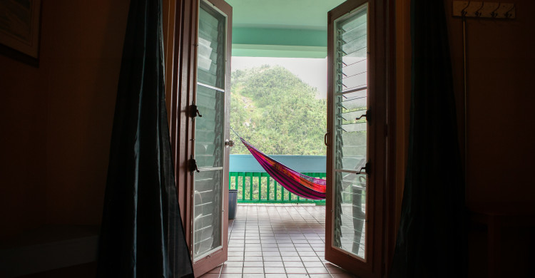 This room is on the mid level of the main Casa Cubuy bed and breakfast ecolodge. This room is the most economical due to the full size bed and the double doors that lead directly to a common area. Private bathroom with hot water shower. The breathtaking views outside the double glass doors sure make up for it! Hammocks are on the patio right outside the room. The nightly rate is $145