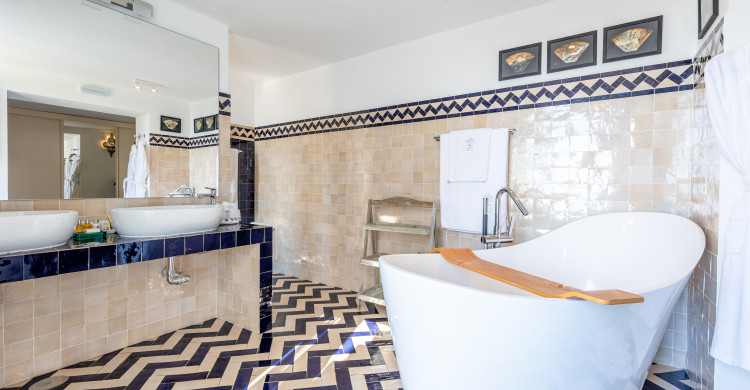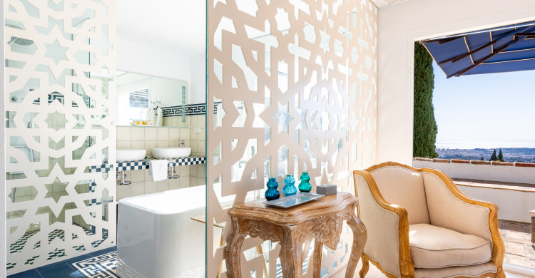 Each of CasaBlu's 12 bedroom suites is a world unto itself, individually designed to surprise and delight. Some suites pamper you with both rainfall showers and deep soaking bathtubs perfect for candlelit relaxation, while others feature private terraces where you can wake to breathtaking sea views with your morning coffee. Every suite includes a luxurious private bathroom and has been thoughtfully appointed with unique touches that reflect the sophisticated charm of Andalucía. Step outside your door onto 14 hectares of beautifully landscaped grounds where you can wander hand-in-hand through gardens, find quiet spots for intimate conversations, or simply enjoy the peace that comes with true privacy. The heated swimming pool invites you to enjoy romantic swims regardless of the season, while the property's expansive nature ensures you'll discover new favorite spots throughout your stay—perhaps a hidden bench overlooking the countryside or a sun-dappled path perfect for evening strolls.
