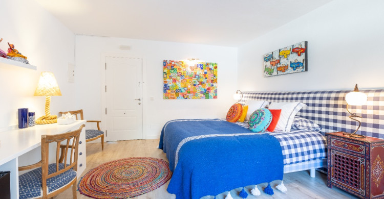 Step into a vibrant world where Majorelle blue colors the lively spirit of the bazaar. Azul Majorelle del Zoco captures the essence of bustling markets and colorful treasures, evoking joyful memories of discovery. Inspired by the rich culture of the souk, this suite invites you to immerse yourself in a tapestry of sights and sounds. Conveniently close to CasaBlu’s main attractions, its flexible Hästens beds can be separated for added comfort and accessibility.