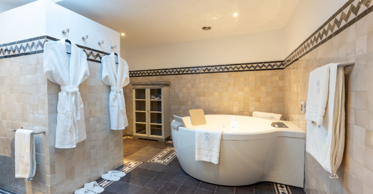 Step into a haven where daylight softly fades into twilight’s embrace. The Crepúsculo Celestial suite invites you to unwind on a luxurious Hästens bed beneath a sky of twinkling stars. With a spacious terrace and a grand two-person jacuzzi bathtub alongside a generous shower, it blends serene comfort with elegant design. Every detail reflects the quiet beauty and refined charm of Andalusia’s evening skies.