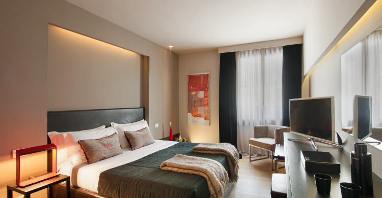 The Charming rooms face onto the Rio Torreselle, a typical Venetian canal, or the garden of the Peggy Guggenheim Museum. They are mainly characterized by space, light and art, in the true spirit of the Charming House concept. Equipped with a bathroom with rain shower or bathtub, the rooms are elegantly furnished with materials and fabrics from renowned designers such as Frigerio and Designers Guild, featuring Renzo Serafini and Via bizzuno lamps, art works by Gianni Tarli and Stefania Orrù, and photographs by Mauro Mazzolini. Furnishings by Paola Navone for Gervasoni and Saarinen for Alivar provide for a uniquely refined ambiance