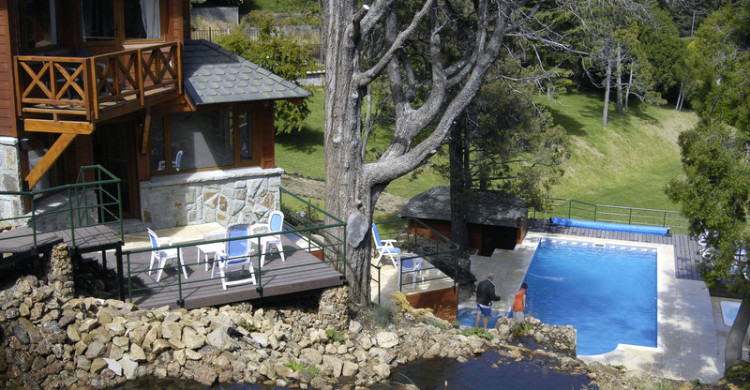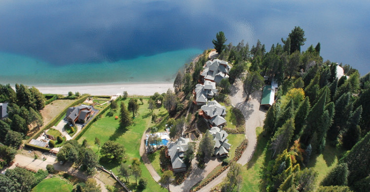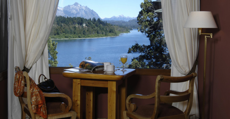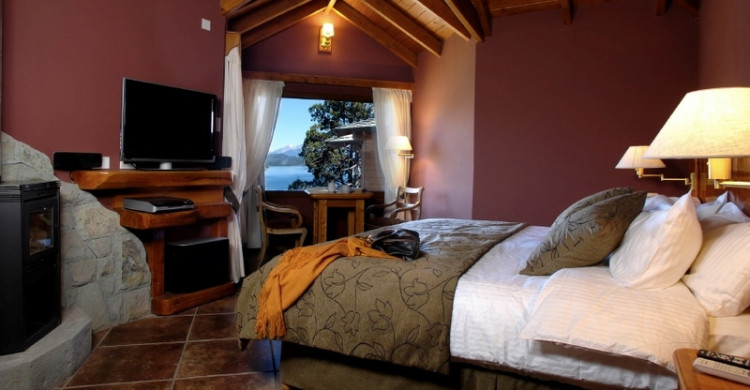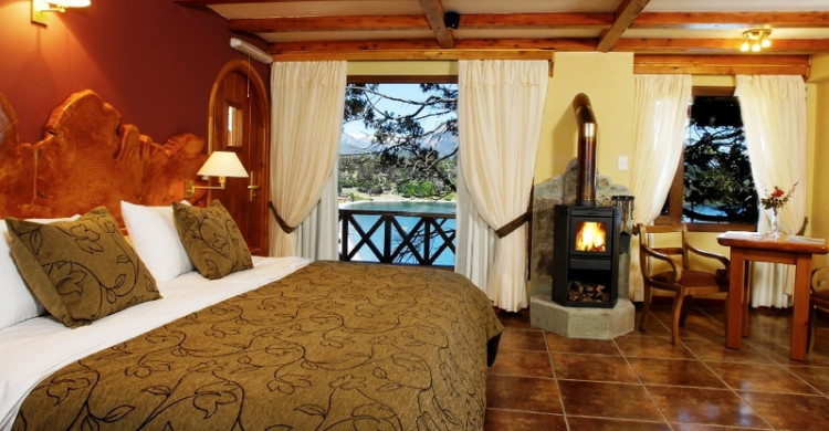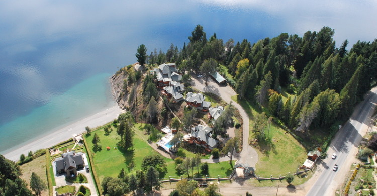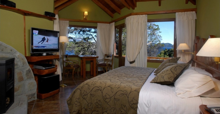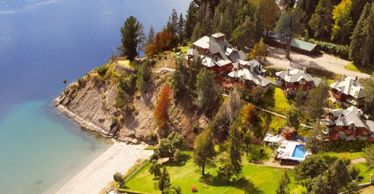 The Charming Luxury Lodge & Private Spa enjoys a stunning location overlooking Lake Nahuel Huapi in the Patagonia region of Argentina. This 200-square-mile glacial lake lies at an altitude of 2,500 feet and is surrounded by snow-capped mountains. Built in mountain lodge style, the hotel is set among landscaped gardens and mature pine forests with a beach, Playa Bonita, adjacent. The centre of the picturesque town of Bariloche, with its charming old town, is just over four miles from the hotel and the ski slopes of Cerro Catedral are seven miles away.