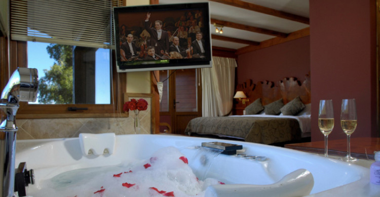 There is an excellent range of leisure facilities onsite including a heated outdoor pool with lake views, two outdoor jacuzzis and a fully equipped gym. The spa includes a sauna and a massage room and available treatments range from hot stone massages and reiki to chocolate facials and thermal mud masks. You can explore the hotel's grounds and relax on the adjacent beach, and excellent hiking and mountain biking are available in the surrounding countryside. You can also take a trip into Bariloche which has excellent shopping and a good choice of restaurants. World-class skiing is available during the winter months at the easily accessible Cerro Catedral ski resort.
