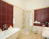 A 45 m2 Central Suite with an emperor size bed, 1 convertible sofa that can accommodate 2, bathroom with shower and bath tub, view on Chateau Gardens and the Golf Course.