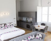 Our studio private guest suites are superbly well-equipped with a compact kitchen area containing microwave / convection oven, two induction hobs, integrated mini-fridge, dishwasher and washer dryer (or in some cases a shared mini-laundry).