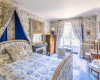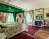 The Chambre Esprit de Jouy Verte has emerald green Toile de Jouy fabric, period Louis XVI furniture and oil paintings, a Juliet balcony overlooking the garden and park, and a large window overlooking the swimming pool. The adjoining room has royal blue Toile de Jouy fabric, and likewise a Juliet balcony overlooking the garden and park