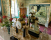 Chambre Esprit de Jouy Verte is a 350 sqf double room with a king size four poster bed, and an ensuite bath.WC. Priced at 540 € per night. There is a large, adjoining single room, The Chambre Esprit de Jouy Bleue, 200 sqf, with a period Louis XVI bed (1,30x2m), and it’s own ensuite shower. Both rooms together make a large, independent Suite, the Suite Esprit de Jouy Verte and Bleue, priced at 760 € per night.
