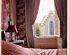 This room features George III period antiques, a fireplace and Braquenié designer fabrics. It overlooks the XVIth century courtyard and orchard. The small adjoining room overlooks the family chapel, thus making this a junior suite, the Suite aux Fleurs.
