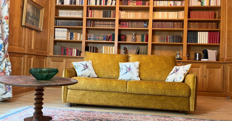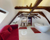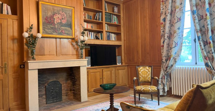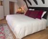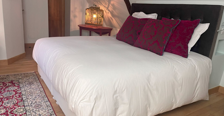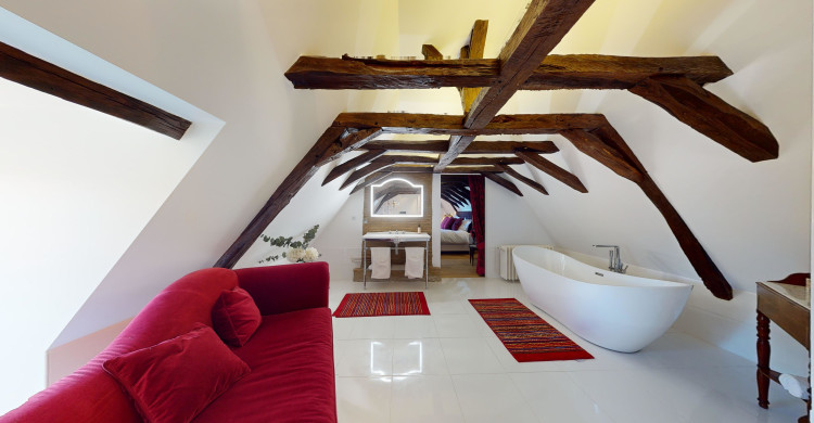 Located on the first floor of the castle in the west wing, accessible by a staircase, the Apolline suite is the largest suite in the château. This magnificent suite benefits from a large bedroom, a small lounge, and a very beautiful and spacious bathroom with a sumptuous bathtub, chaise longue and walk-in shower.