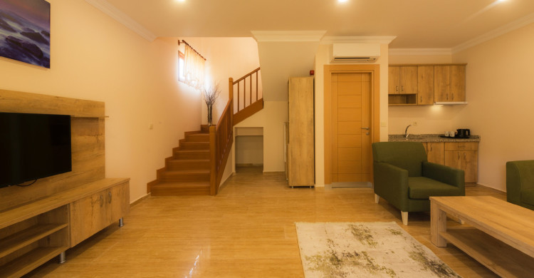 An elegant 50m2 detached Club Duplex Suite situated in the garden. These rooms consists of a living room + a bedroom. In the living room there is a comfortable sitting area and the bedroom features a double bed. Many of Club Duplex Suites have a view of the garden.