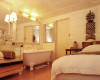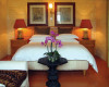 Safari Suite: (1 x Queen & 1 x ¾ bed & 1 x Single) 48 m2 (can sleep 2 or 3 or 4 people in 1 Queen bed +1x¾ bed+1 single bed) This air-conditioned three or four-bedded family Suite has three alcoves. First alcove is the entrance/lounge, second alcove is a Bedroom with a Queen size bed, and third alcove has a single ¾ bed leading onto a bathroom en-suite with a large shower and a separate Victorian face to face bath, and a beautiful all mirrored unit floor to ceiling with 2 glass wash basins.. It enjoys views across Sandvlei Lake, the Cape Peninsula, False Bay and the Atlantic Ocean