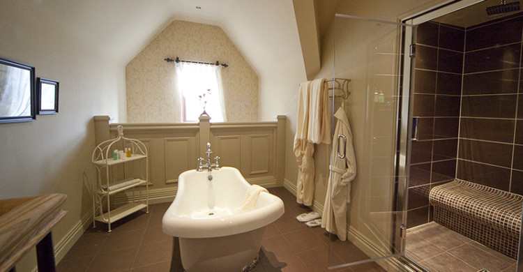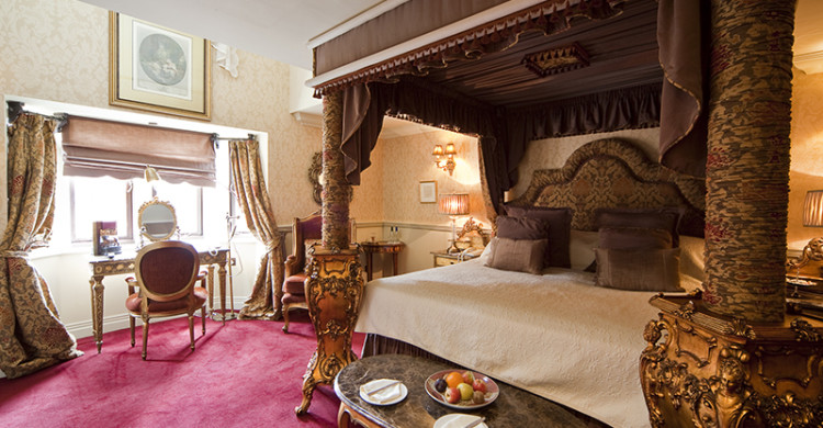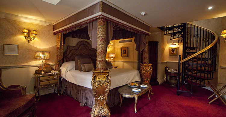 The Berkley is situated in Park Priory, and has been decorated in rich golds, soft deep reds. On top of a lavish four-poster bed, with an ornate table at the foot, you'll also get to enjoy views of the Park Priory courtyard from the window. And, as you journey up the spiral staircase to the mezzanine, you'll discover a Victorian bath and a large wet room.