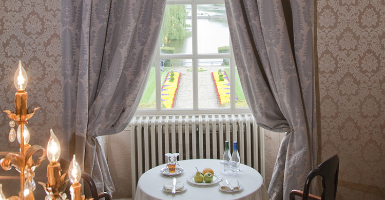 The lavish four-poster bed takes pride of place in the centre of the room, and is set upon a raised area, which features steps leading up to either side. The bedroom and bathroom’s two large windows will provide you with ample opportunity to enjoy the captivating views of the lakes and gardens below.