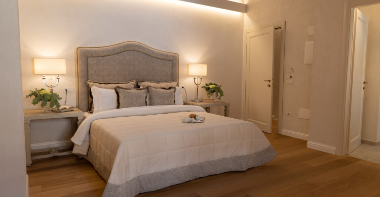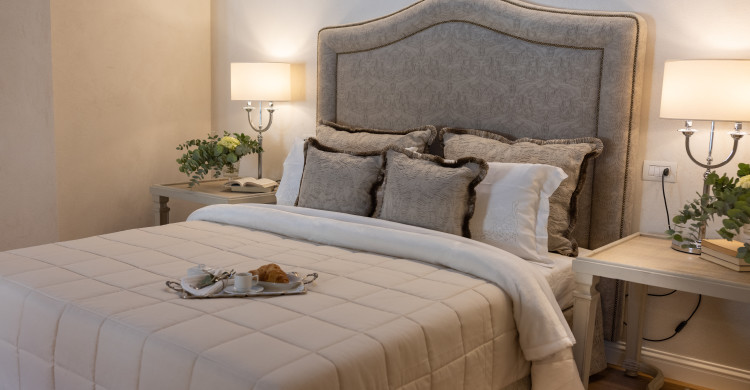 Superior Room - Barchessa 1 characterized by a unique style and curious details. Some elements of the original house, such as the beams and tuffs, have been recovered to make you experience the warm atmosphere that the ancient country houses emanated. Elegant room located on the first floor of the central body of the Court with a view of the Valpolicella hills!
