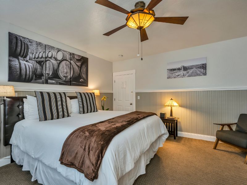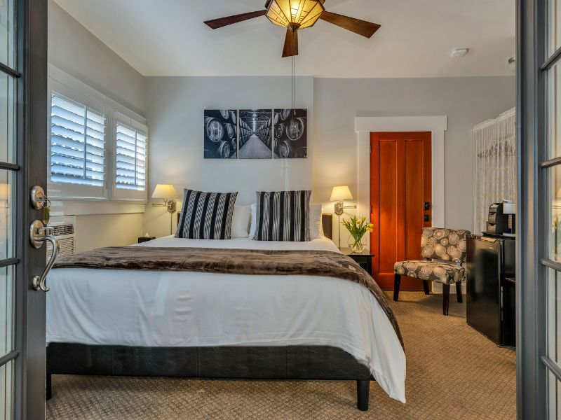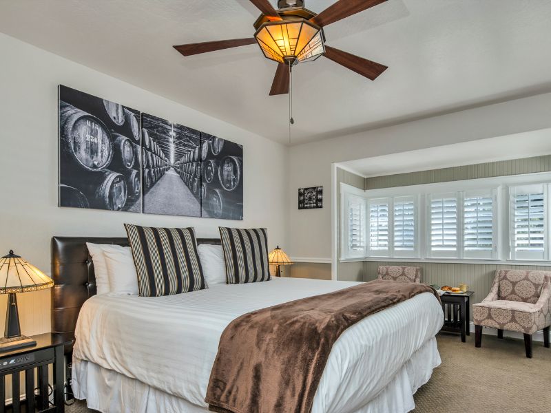 Experience the perfect blend of historic charm and modern comforts at Craftsman Inn. Each elegantly furnished room features plush bedding, spa-like bathrooms with jetted tubs, and thoughtful amenities to enhance your stay. Enjoy a delicious gourmet breakfast at a nearby cafe before setting out to explore Napa Valley’s wineries and scenic landscapes. After a day of adventure, relax on the inn’s inviting porch or cozy up by the fireplace. With personalized service and a prime location, your stay at Craftsman Inn promises to be both restful and unforgettable.