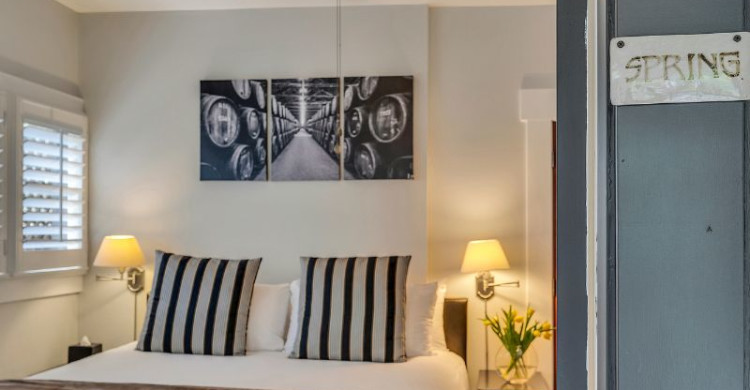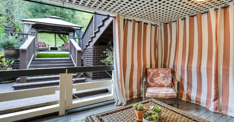 Escape to the tranquil charm of the Spring Room at the Craftsman Inn, where a private curtained porch invites you to relax in a peaceful garden setting. Lounge in comfortable chairs, sip wine at the bistro table, and soak in the serenity of your own secluded retreat.