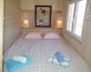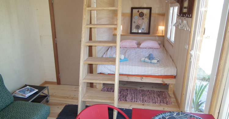 The mattress on the loft bed measures 140 x 190cm. The sofa bed below is 128 x 180cm. But when you fold it out, there is hardly any space left in the cottage.