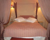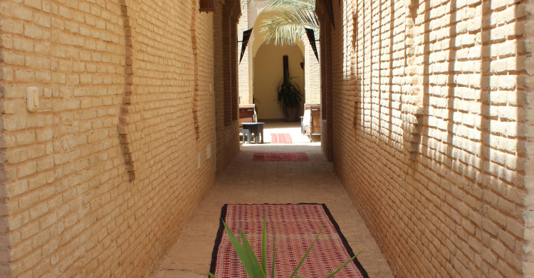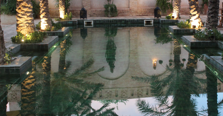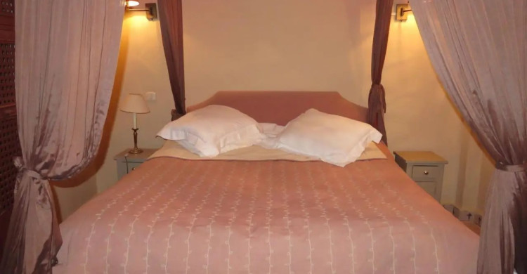 Located on the first floor, a beautifully decorated suite with a pleasant bathroom, tiled floor, typical furniture and four-poster bed. Its windows and balcony overlook the two swimming pools and the riad's gardens. The bathroom has a walk-in shower, washbasin and toilet.